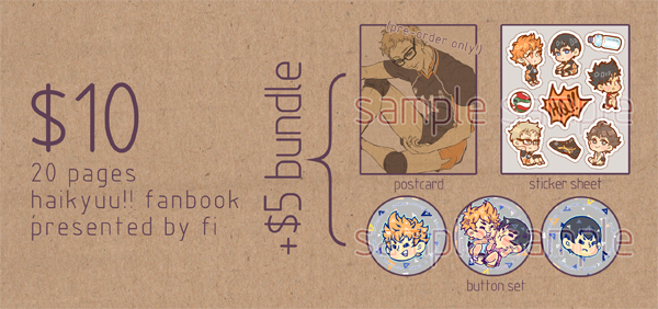 Haikyuu!! Zine. 4.25x5.5″ zine printed on 65lb kraft cover and 32lb text interior. 20 pages. Hand bound.